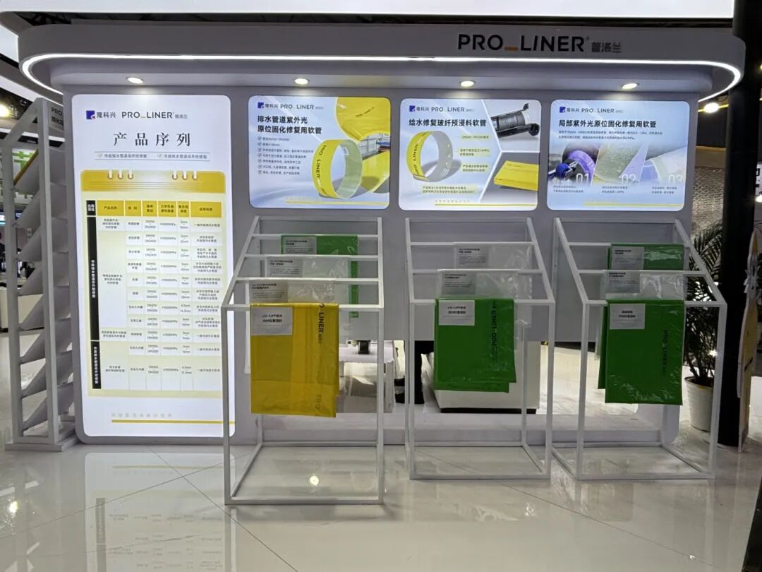 普洛兰在展会现场带来了非开挖修复材料的全新产品序列,包括从排水用原位固化修复用内衬软管、给水玻纤预浸料软管的全新产品序列。