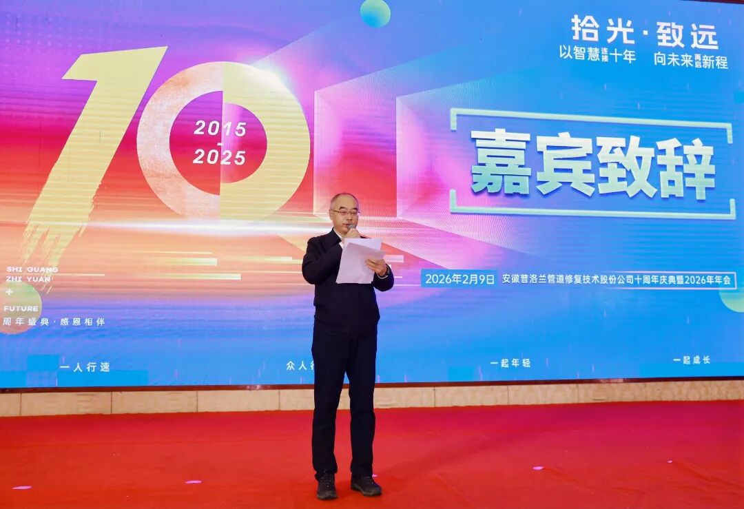 此次年会,多位长期关心支持普洛兰发展的合作伙伴、行业专家作为特约嘉宾莅临现场。他们与普洛兰的故事,构成了品牌成长历程中温暖而重要的一章。盛典现场上,皖江江南新兴产业集中区党工委委员/综合管理部部长宁睿、中国市政协会市政管道与非开挖技术专委会主任安关峰、中国市政工程协会市政管道与非开挖技术专委会秘书长伍进、池州新兴产业投资集团有限公司董事长吴双寿、安徽省江南产业集中区建设投资发展(集团)有限公司董事长孙玲玲、安徽江南新兴产业投资有限公司经理唐洁等一席领导参与本次年会,共同见证普洛兰十年风雨。